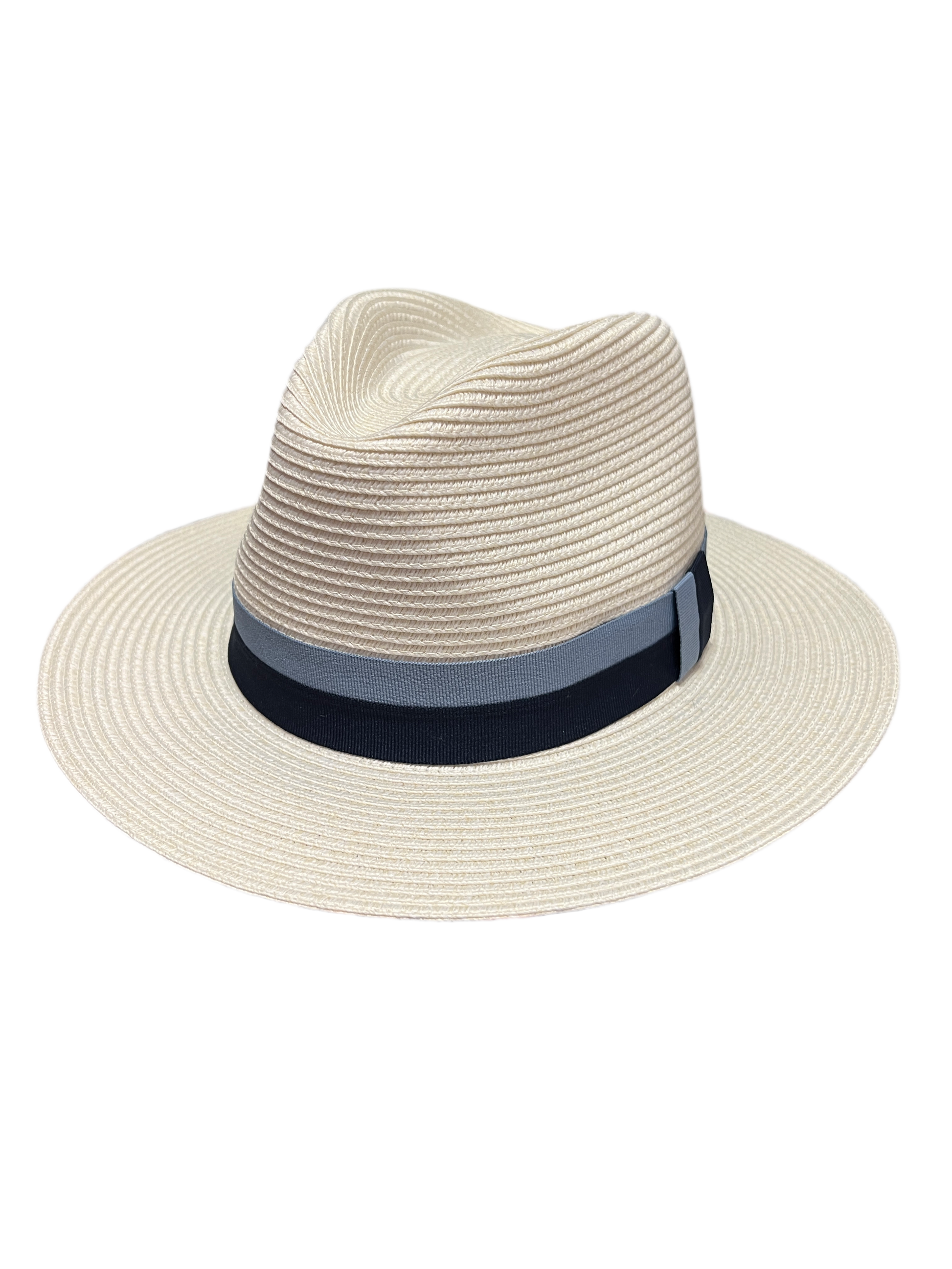 Our best-selling Ivory color Fedora, made with our signature blended FibreTex™️ features with Two-Tone grosgrain ribbon, adding a touch of elegance and personality offers a stylish and sophisticated look perfect for sunny days.